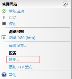在IIS(6.2版及以上版本)中 “點擊網(wǎng)站”->“右擊切換到功能視圖”->“點擊界面右側(cè)的 ‘限制...’ 鏈接”->“編輯網(wǎng)站限制”
