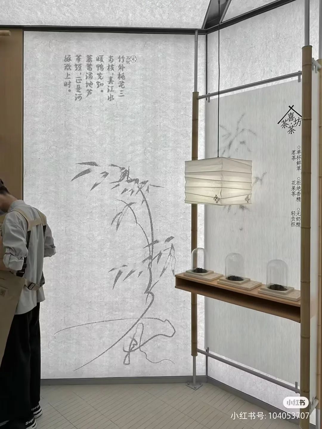 從店面的大體情況來看,喜茶茶坊與深圳南頭古城手造旗艦店不同,該店面積較小,從場景到產(chǎn)品展示都體現(xiàn)出新中式風(fēng)格。