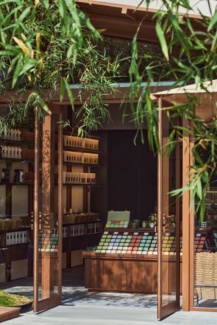 門店裝修從宋代茶坊中汲取靈感,融入茶文化和國風(fēng)竹林元素,廊道和竹亭被置入空間,營造山居竹間的飲茶意境,打造舒適愜意的現(xiàn)代飲茶空間。