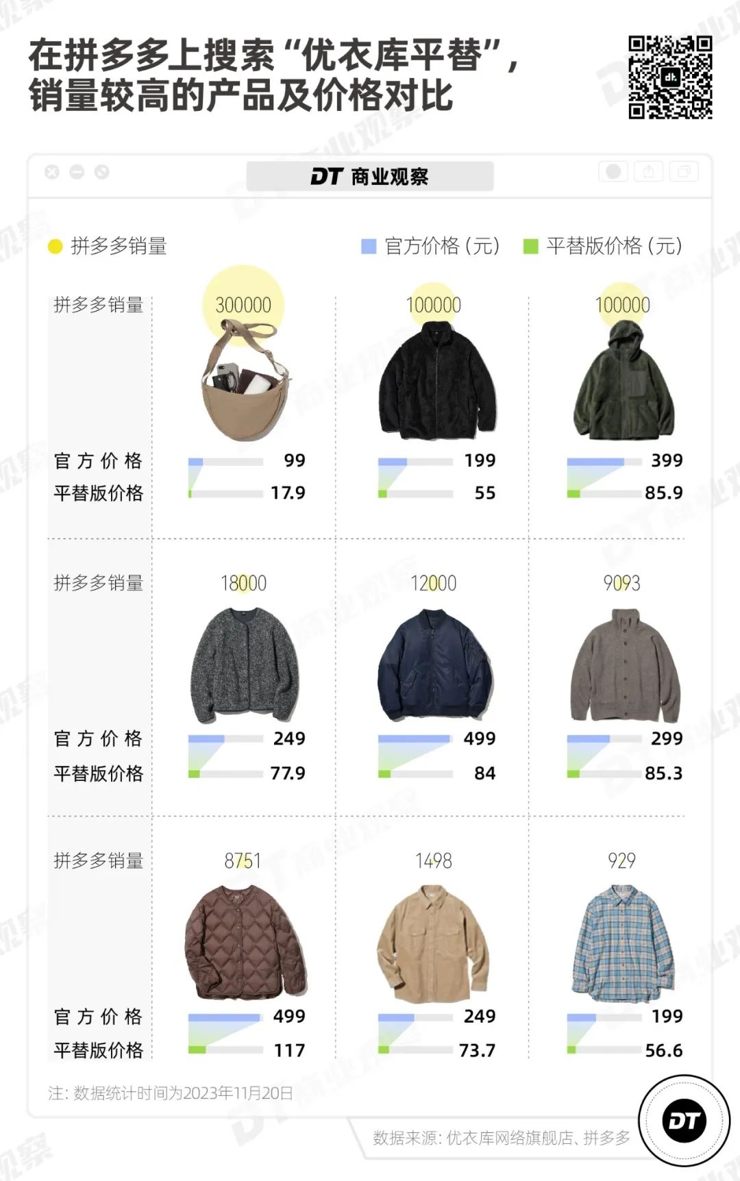 《DT商業(yè)觀察》結合社交平臺上的討論和拼多多上的銷量,整理了9款熱賣的“優(yōu)衣庫平替”產品。