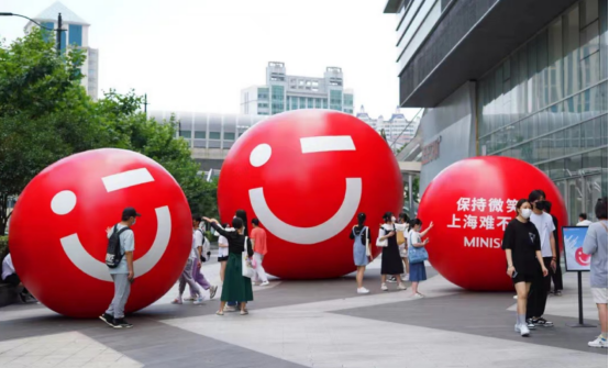 名創(chuàng)優(yōu)品的表情裝置,簡單的微笑也可以吸引消費者走近