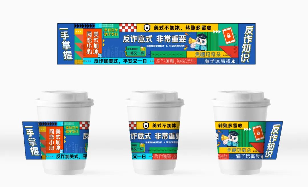 舉個(gè)例子,我們有一個(gè)金融客戶,聯(lián)名了一個(gè)反詐IP,想以反詐為主題設(shè)計(jì)一款杯套。同事通過一些設(shè)計(jì)形式的變化,給客戶提供了好幾個(gè)方向,比如以盾牌作為主要元素、以手機(jī)作為主要元素、以聯(lián)名的IP形象作為主要元素、以鎖作為杯套的卡扣等等,再加上一兩句反詐的口號,排版和配色也改了又改,可是客戶都不喜歡,同事很納悶,內(nèi)容是與反詐相關(guān)啊,創(chuàng)意也有啊,視覺也不難看啊?客戶到底想要什么呢?事實(shí)上客戶自己也不知道,只覺得不夠好。
