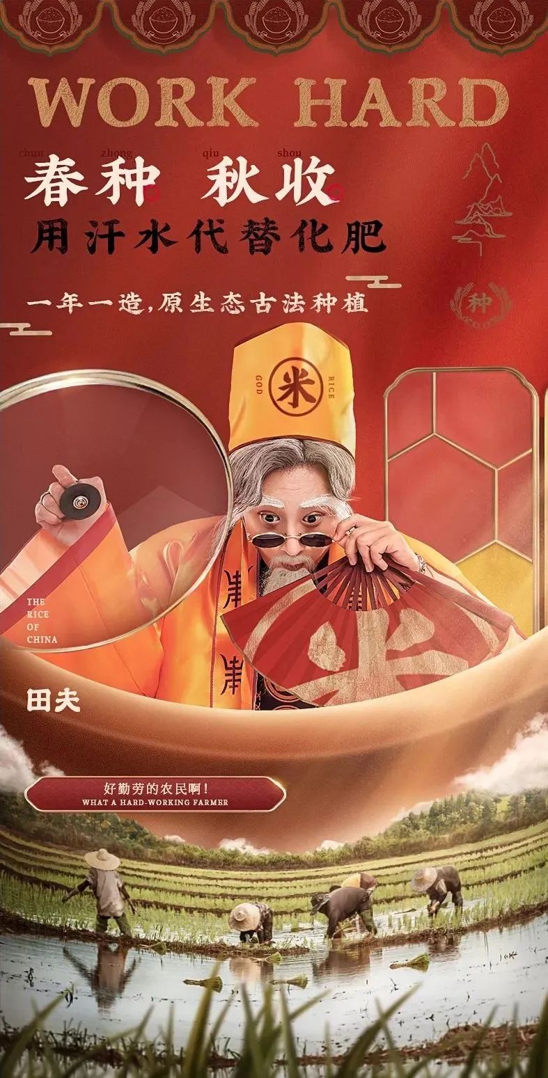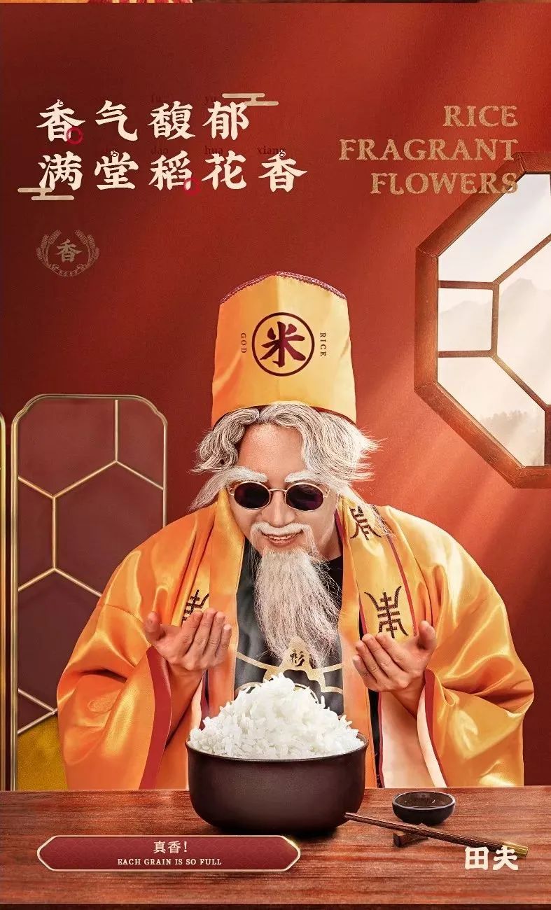 比如某大米品牌,其定位叫做神仙米,所以設(shè)計(jì)師用一個(gè)“神仙”的角色來貫穿整個(gè)詳情頁,塑造出神仙都經(jīng)不住該大米誘惑的感覺,通過這種方式也有效與其他品牌建立了區(qū)隔。