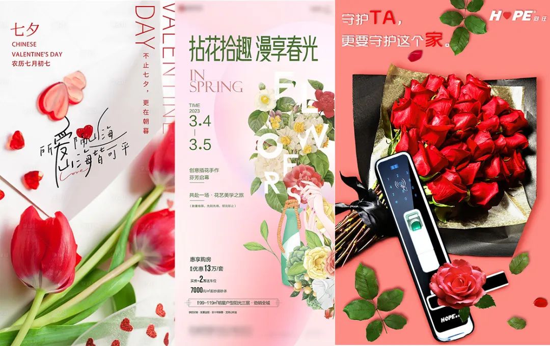 舉個(gè)例子,我們要給某鮮花連鎖店在七夕節(jié)做一些廣告,普通設(shè)計(jì)師可能立馬就會覺得客戶就是想做幾張海報(bào),所以首先就會向客戶索要花店名稱、鮮花圖片、標(biāo)題、鮮花介紹的文案、促銷信息等,他來負(fù)責(zé)做排版、圖形創(chuàng)意之類的工作。
