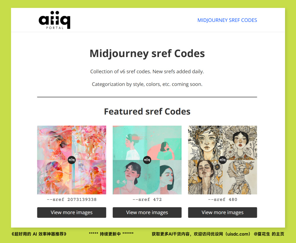 鏈接直達: https://aiiqportal.com/midjourney-style-reference-codes/