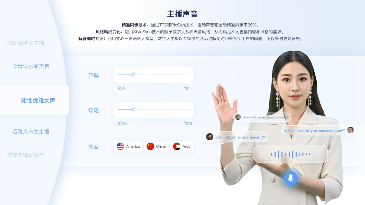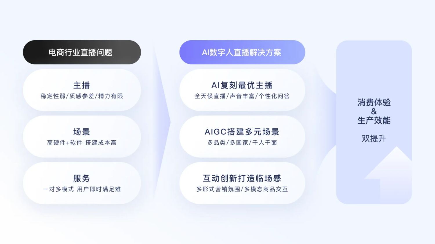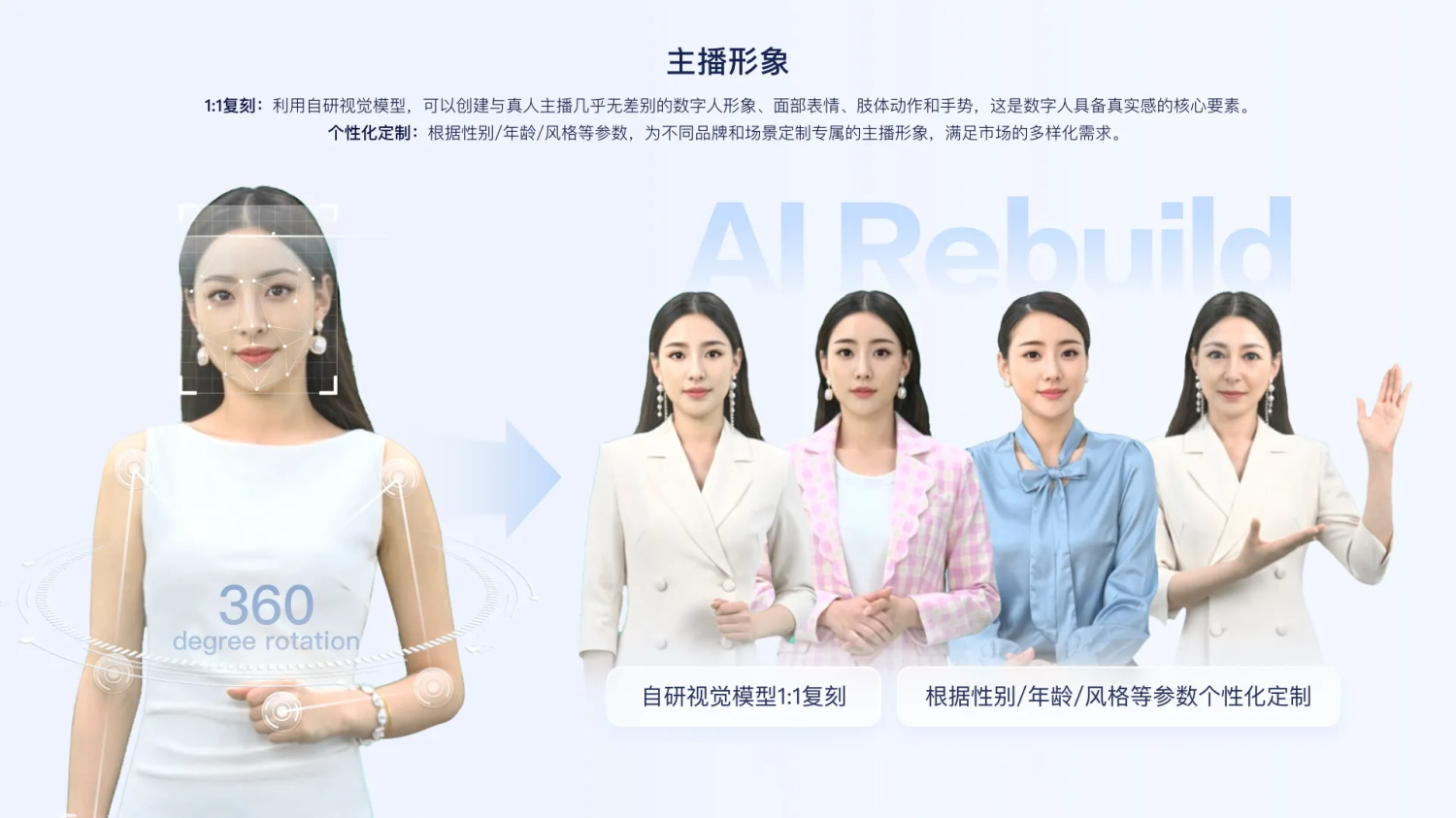 「電商 AI 數(shù)字人直播解決方案-慧播星」依托自研 StyleSync 技術(shù)/音頻自恢復(fù)預(yù)訓(xùn)練技術(shù)/文心一言/自研 PicGen 技術(shù)等,實(shí)現(xiàn) AI 復(fù)刻/定制優(yōu)質(zhì)主播、穩(wěn)定 7*24 小時(shí)在線開播。低成本搭建多元直播場(chǎng)景,專家級(jí)商品講解、實(shí)時(shí)互動(dòng)問(wèn)答、豐富的互動(dòng)形態(tài)精準(zhǔn)傳達(dá)信息,既讓消費(fèi)者獲得全新的購(gòu)物體驗(yàn),也賦能中小商家零門檻、零成本一鍵創(chuàng)建商品售賣直播間、助推 GMV 增量,減少生產(chǎn)成本,實(shí)現(xiàn)消費(fèi)體驗(yàn)和生產(chǎn)效能的“雙提升”。
