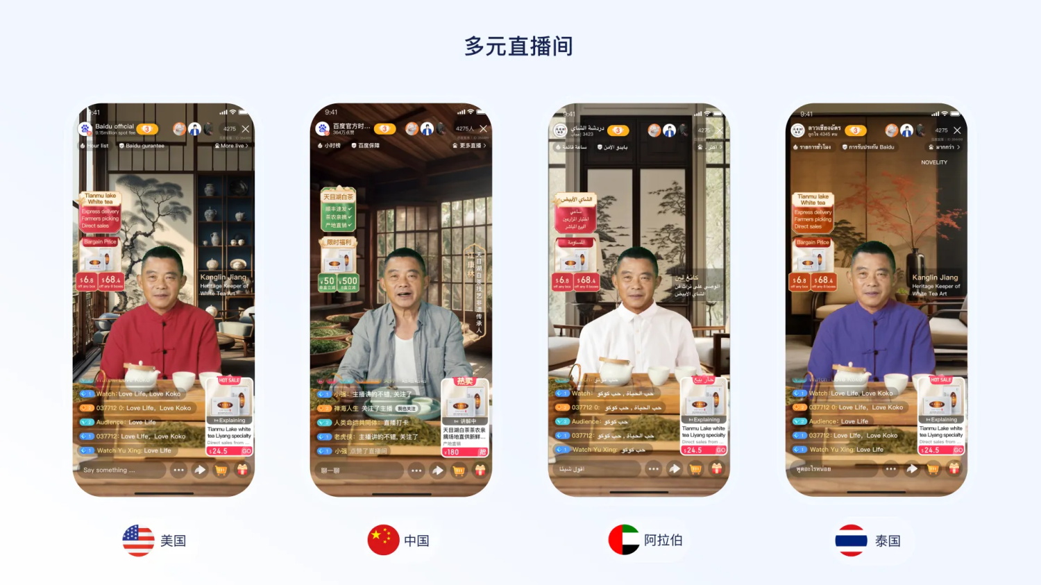利用視覺/語(yǔ)音/大語(yǔ)言模型,結(jié)合用戶群體畫像(年齡/國(guó)家/地域/職業(yè)),數(shù)字人直播間有機(jī)會(huì)實(shí)現(xiàn)千人千面的展示效果,即同一時(shí)間同一主播可在不同的國(guó)家展示相應(yīng)的特色妝造/播報(bào)語(yǔ)言/互動(dòng)風(fēng)格/所處的空間裝修,以及針對(duì)不同用戶狀態(tài)推出差異化的商品交互和講解,以更好地適配地域人群差異化的風(fēng)俗喜好,全天候 7*24 小時(shí)在線服務(wù),大大提升售賣效率。