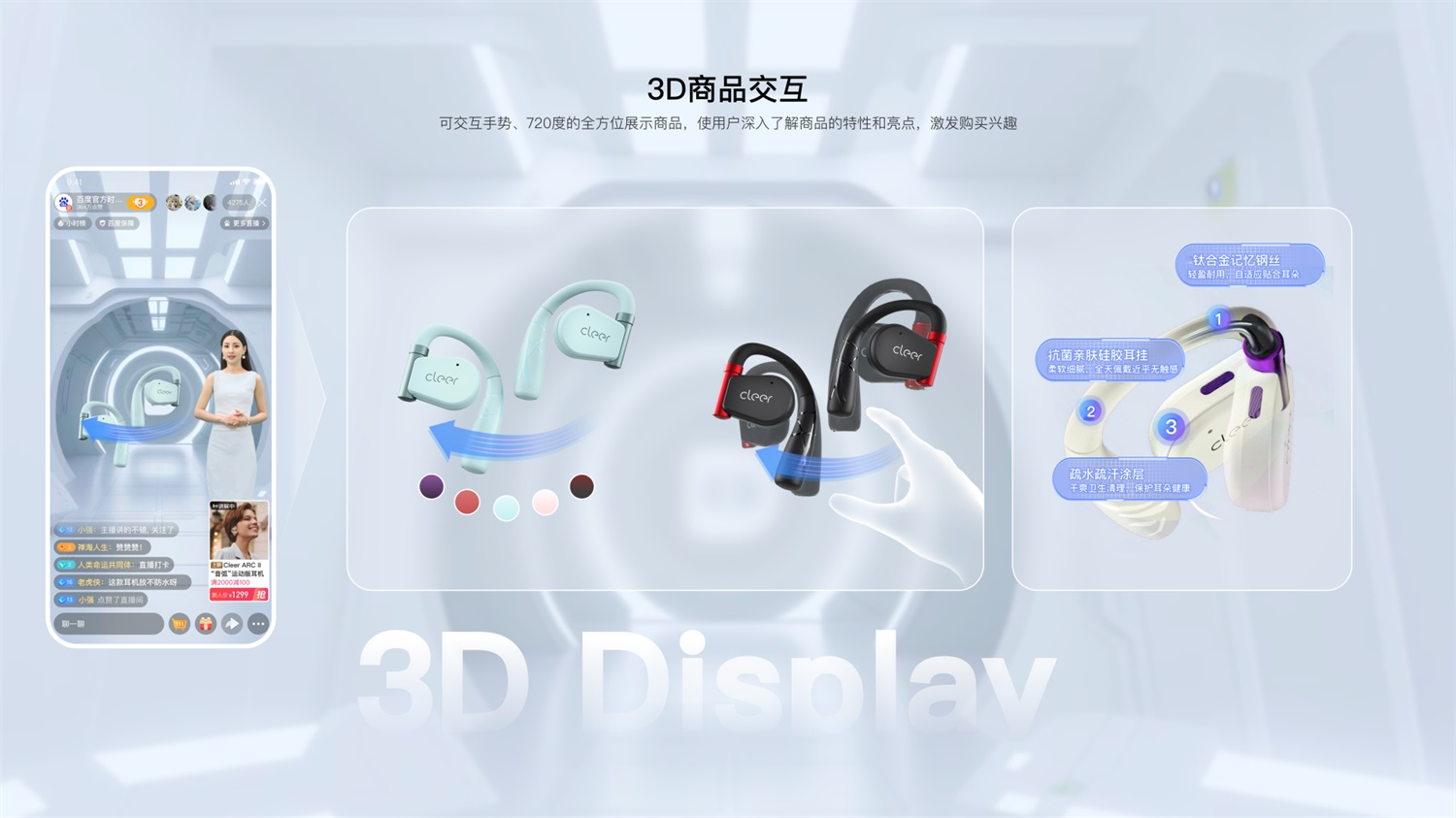 3D 商品交互:可交互手勢(shì)、720 度的全方位展示商品,使用戶深入了解商品的特性和亮點(diǎn),激發(fā)購(gòu)買興趣。