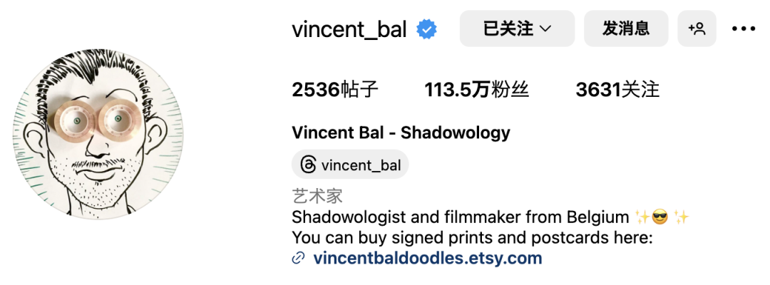 這不,ins上的藝術(shù)家vincent_bal就靠玩影子成功圈粉百萬。