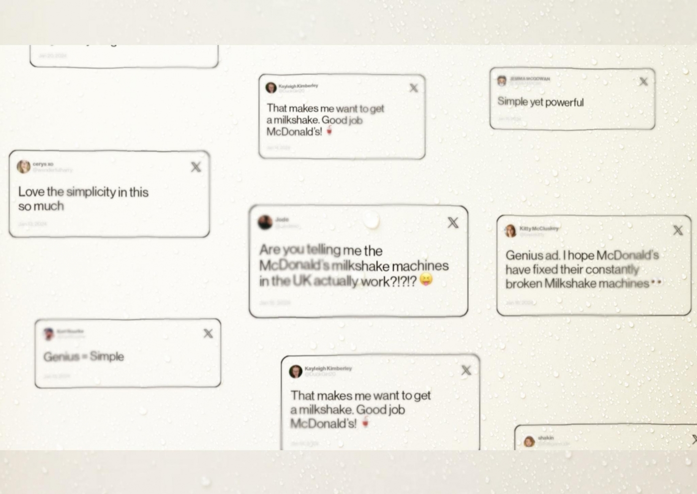 美味的、濃稠的、冷卻的奶昔,作為麥當勞標志性產品,只需要一滴就能認出來。熱浪來襲,麥當勞用一滴奶昔來喚起大家對清涼的渴望。該活動引起了大家的共鳴,導致活動啟動當天的奶昔銷售額達到全年最高。極簡又精巧的海報,也受到了網友們的一致好評。
