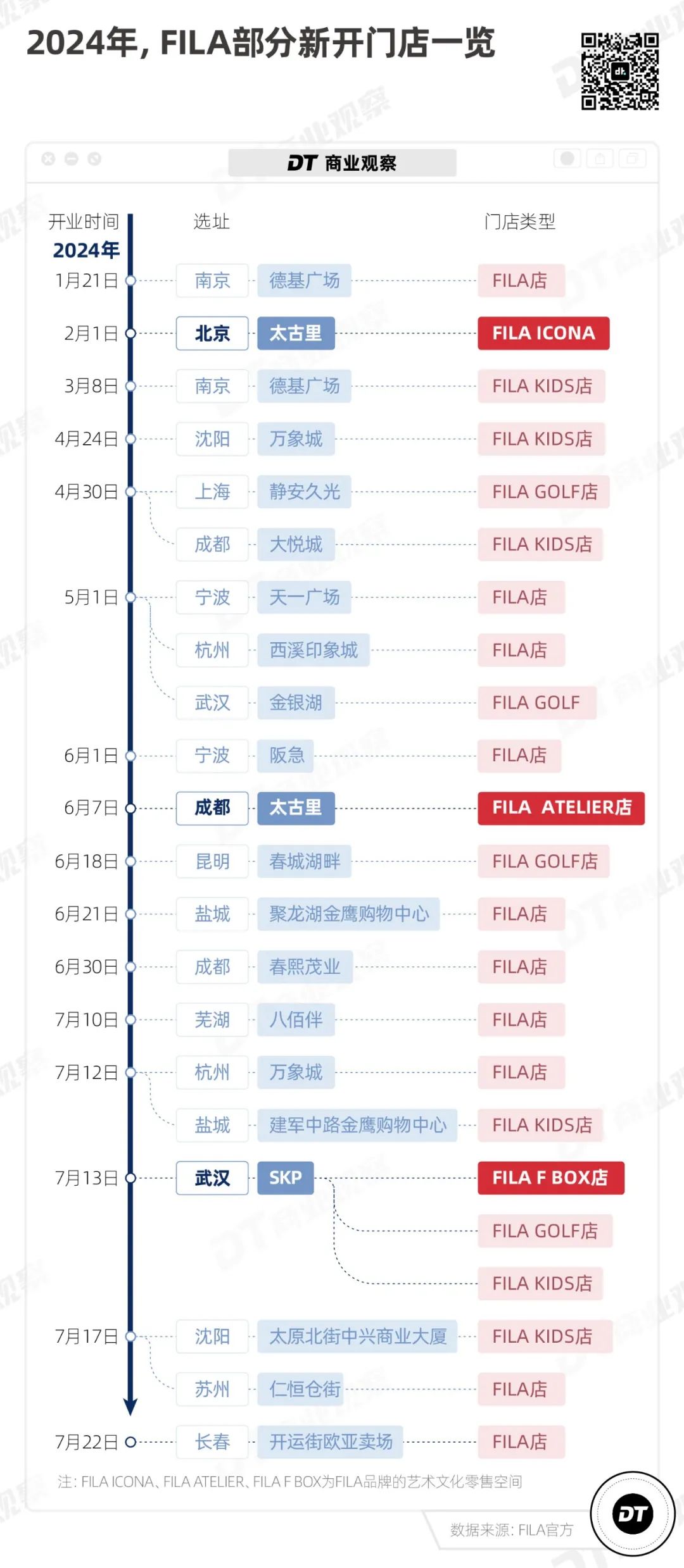 這種在頂級(jí)商圈開店的策略,背后是FILA頂級(jí)渠道戰(zhàn)略的支持,即在高端核心商圈做渠道布局。