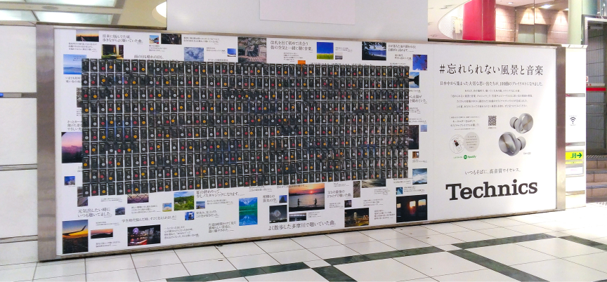松下旗下音響品牌Technics在新品全無線耳機EAH-AZ80推出之際,于東京地鐵新宿站和大阪梅田廣場設立了一塊可剝離的廣告牌,上面貼有千枚音樂鑰匙扣,邀請人們聆聽向大眾征集的、帶有特殊回憶的音樂歌單。