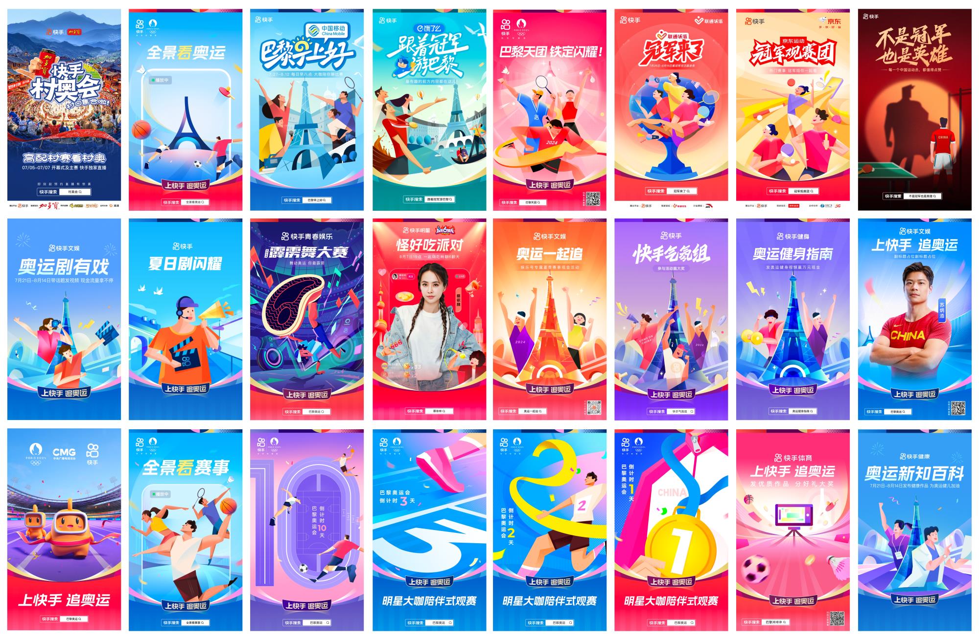 作為設計師的我們,整個奧運期間幫助業(yè)務完成了「快手村奧會」、「巴黎早上好」、「冠軍來了」等 24 個內容 IP 及 820 個相關的物料的設計支持,可以說為快手的奧運活動交上了完美的答卷。