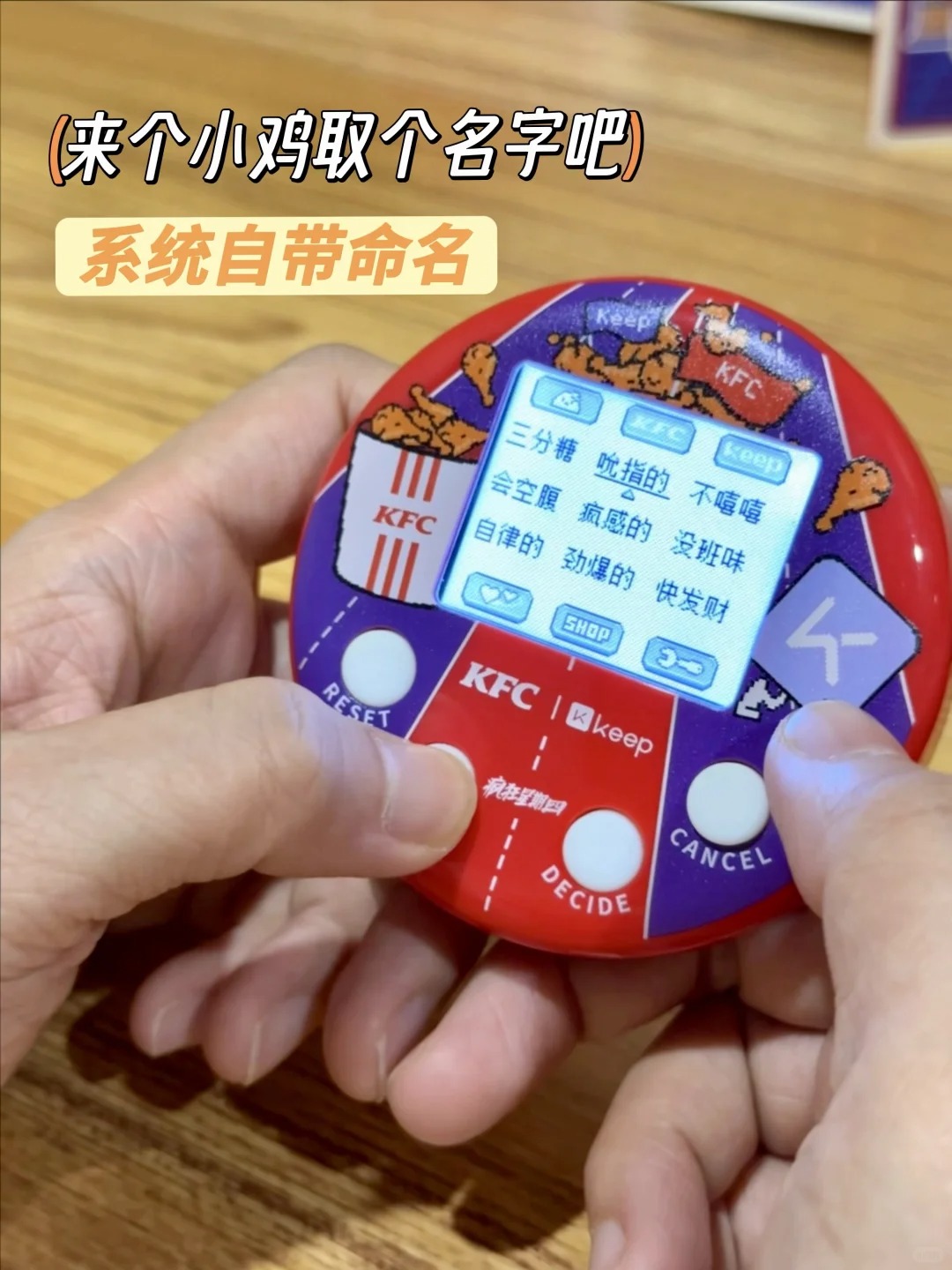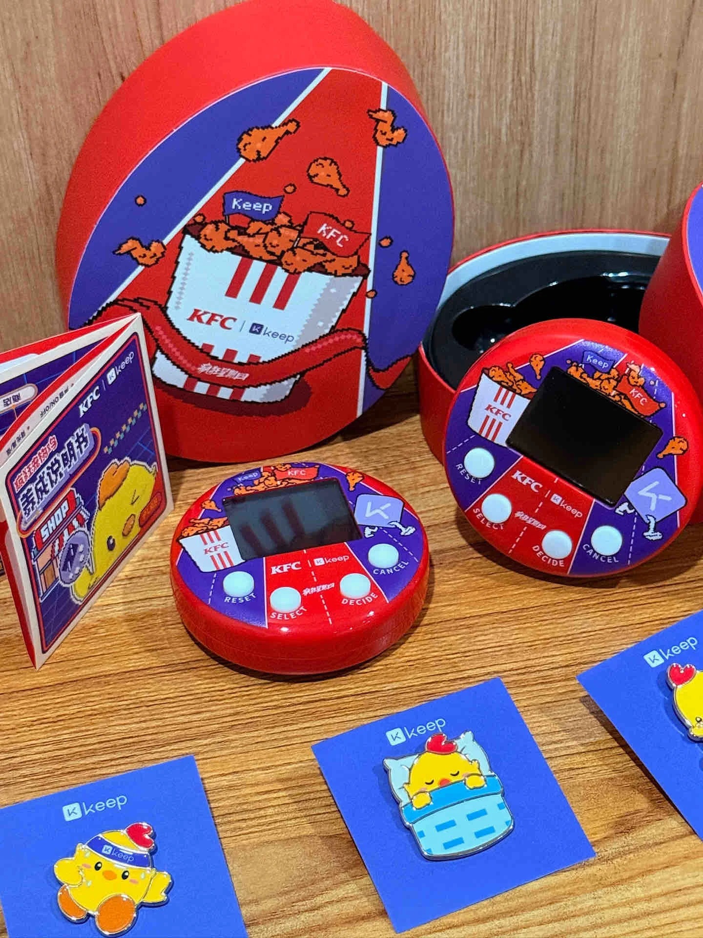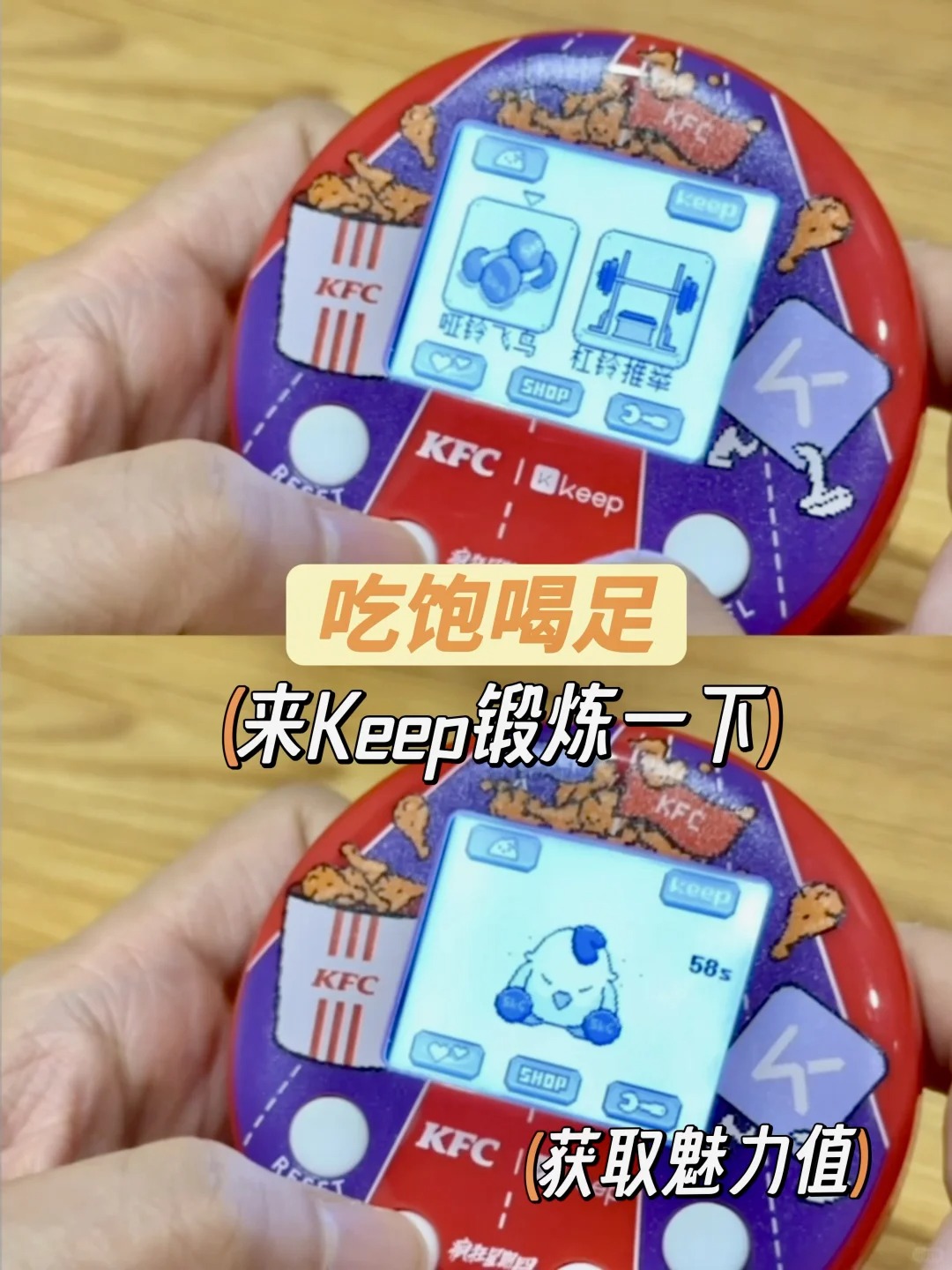 這款電子寵物機(jī)可以給小雞取名,投喂瘋狂星期四套餐,進(jìn)行keep健身,邊吃邊鍛煉。
