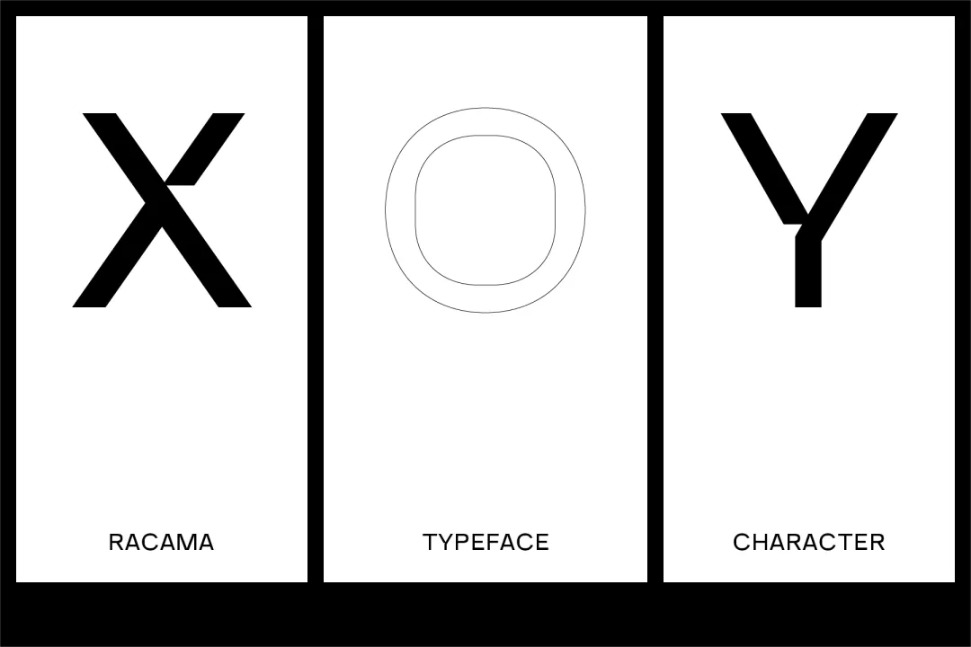 圓方的O帶有一點(diǎn)機(jī)械感和科技感,同時(shí) Racama 在一些斜向的筆畫做了一些切口的處理,使其看起來很有個(gè)性;