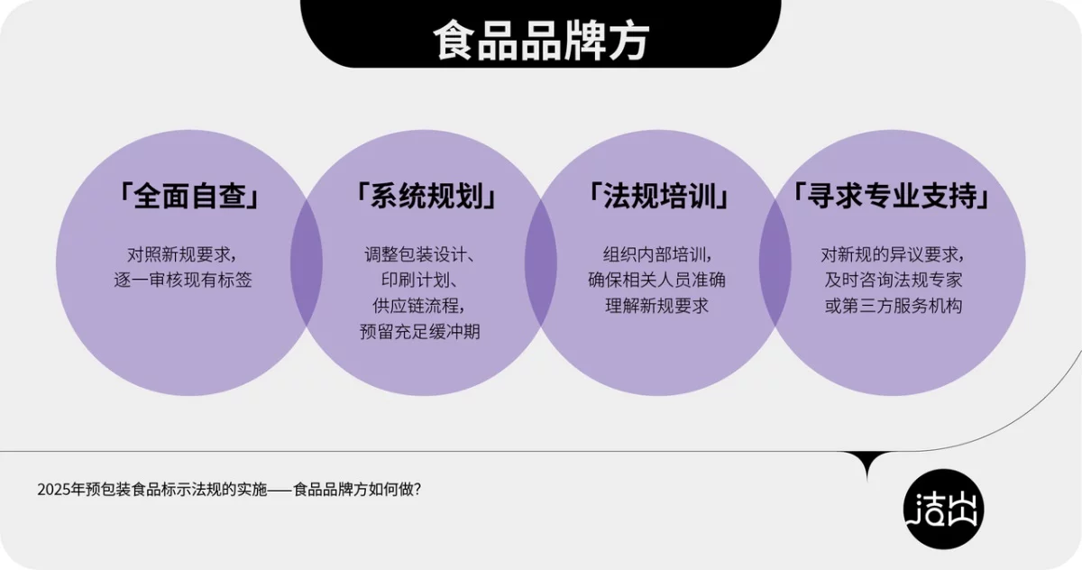 2025 年預(yù)包裝食品標示法規(guī)的調(diào)整,不僅是監(jiān)管要求的升級,更是對食品行業(yè)規(guī)范的發(fā)展、保障消費者知情權(quán)和選擇權(quán)的重要舉措。由此可見,無論是更嚴格的營養(yǎng)成分表標示、過敏源信息的強制標示、還是對“0 添加”等聲稱的規(guī)范,亦或是生產(chǎn)日期、保質(zhì)期標注要求的細化,每一項變化都要求相關(guān)企業(yè)高度重視并提前布局。