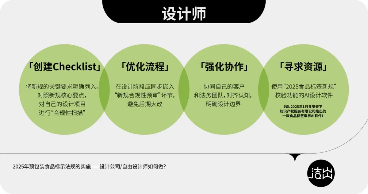 結(jié)語:合規(guī)是底線,更是品牌信譽的基石。早一步布局,方能從容應(yīng)對,避免不必要的損失與風險。對于包裝設(shè)計師朋友們,新規(guī)不僅是挑戰(zhàn),更是展現(xiàn)專業(yè)價值、推動行業(yè)規(guī)范的契機!總之,2025 年預(yù)包裝食品標示新規(guī)是一場覆蓋全行業(yè)的重大變革,涉及標簽設(shè)計、印刷品控、法務(wù)等多個環(huán)節(jié)。面對更嚴格的合規(guī)要求和緊迫的時間窗口,合規(guī)升級刻不容緩,行動力就是競爭力,讓我們共同迎接更規(guī)范、更透明的食品標識新時代!
