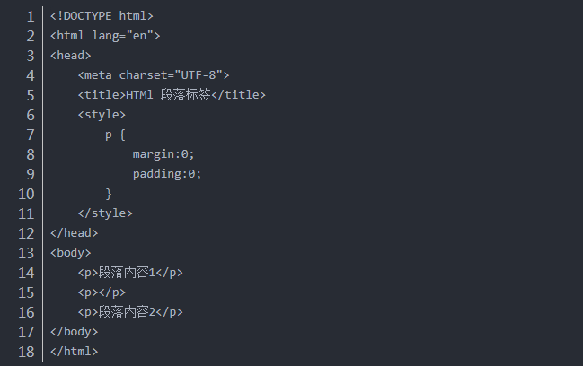 style中設(shè)置段落標(biāo)簽的屬性:內(nèi)外邊距為0。不加style樣式,即默認(rèn)瀏覽器樣式,兩行之間由于<p></p>存在的緣故會(huì)有空隙,即空標(biāo)簽也會(huì)占位置。