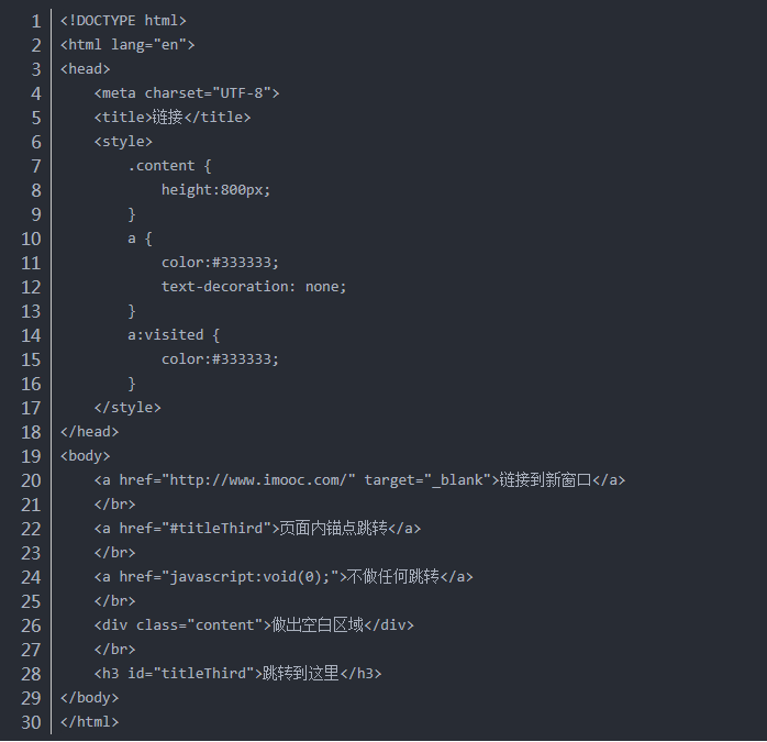 注4:style中的.content,目的是為了空出一片區(qū)域展示頁面內(nèi)錨點(diǎn)跳轉(zhuǎn)的效果