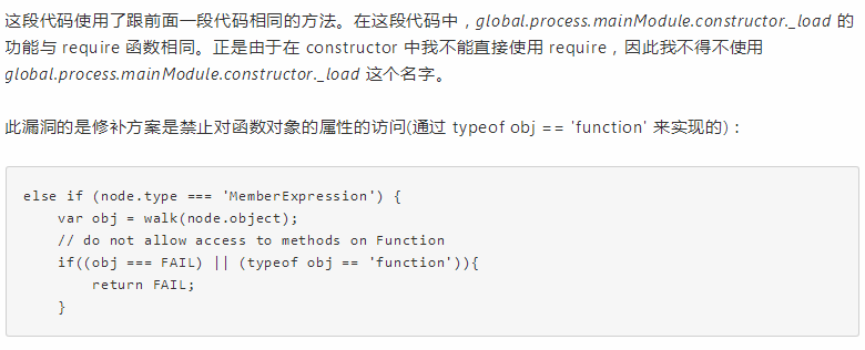 最后,通過分析網(wǎng)站的錯誤日志,我推斷處它們應該使用的是 static-eval ,這是一個不太流行的庫(由 substack寫的,這個人再 NodeJS 社區(qū)中非常有名)。盡管它的文檔中寫了,它并不是被設(shè)計來作為沙箱的,但是我仍然十分確定他在這個網(wǎng)站中被用作了沙箱。