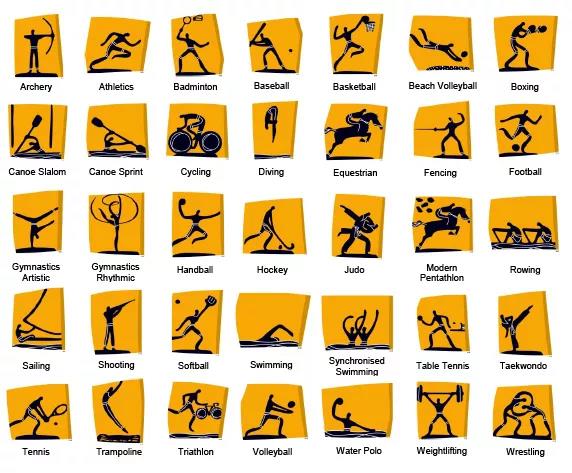 奧運會的主要視覺元素包括五環(huán)標志、會徽、色彩形象系統(tǒng)和吉祥物。這些元素會被應用到運動會所需要的各種標識和物件中,例如宣傳海報、體育項目圖標、事物用品圖表、辦公用品標識、環(huán)境標識、紀念品和服飾等等。除此之外,每屆奧運會的金銀銅獎牌和火炬也需要特別設計。