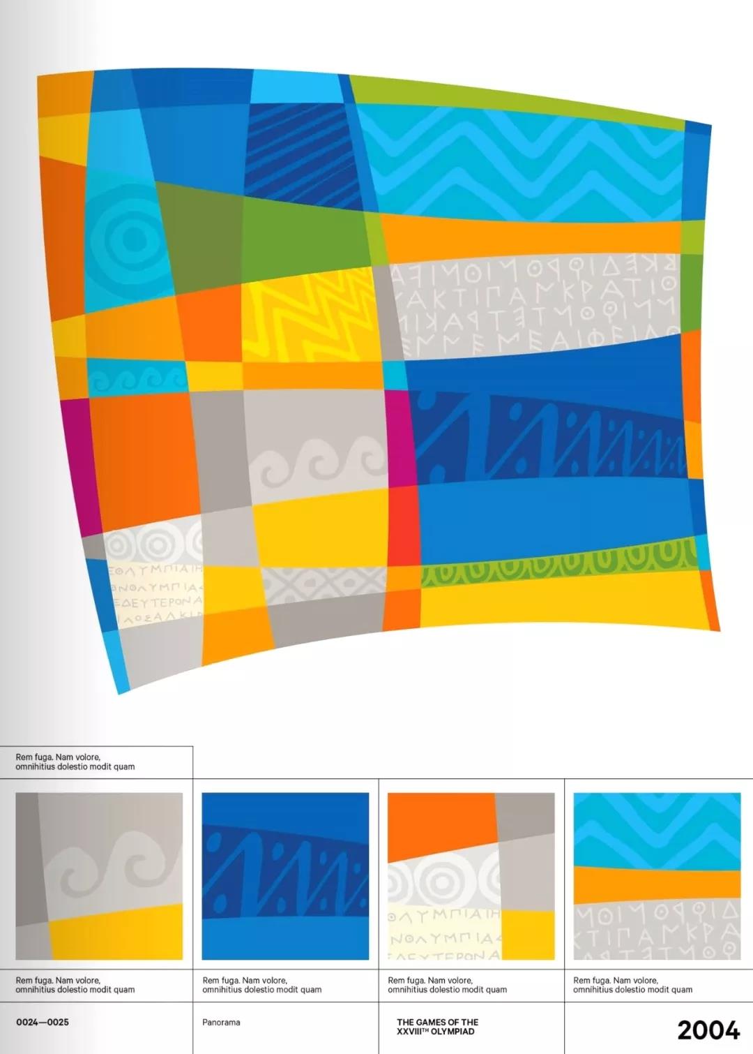 2004年,奧運會在104年之后回到了故鄉(xiāng)雅典。第28屆奧運會的會徽以愛琴海的蔚藍色為底,中央是象征著和平的橄欖枝。其視覺體系的核心圖形融合了希臘浮雕花卉裝飾、Nemea石碑上印刻的文字、田野的圖案和碎石地面的紋路等元素。圖案被應用到了會徽、指引標志、吉祥物等視覺標識中,向世界展現(xiàn)了希臘文化和環(huán)境的全貌。