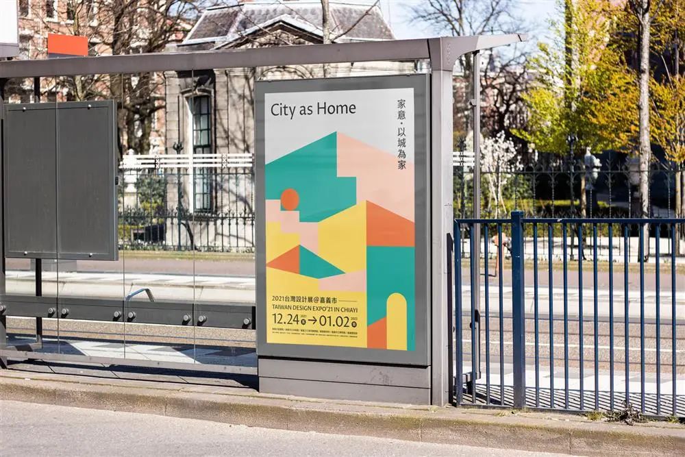 主題為“家意 ? 以城為家 City as Home”,由一件設(shè)計工作室的總監(jiān)曾國展操刀,以城市、山林、家的意象層層敘說著嘉義市的兼容并蓄,使用大量的分割與色塊,來呈現(xiàn)嘉義這座城市的宜居、溫暖與熱情。