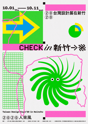 主題為“Check in 新竹—人來風(fēng)”,由葉忠宜操刀,使用大量活潑、彈性的符號來營造,還結(jié)合了臺灣常見的「LED跑馬燈」,像素文字呈現(xiàn),創(chuàng)造各種應(yīng)用可能。