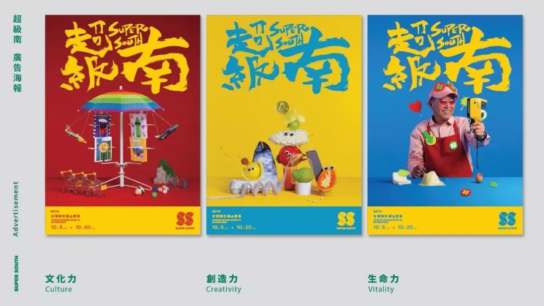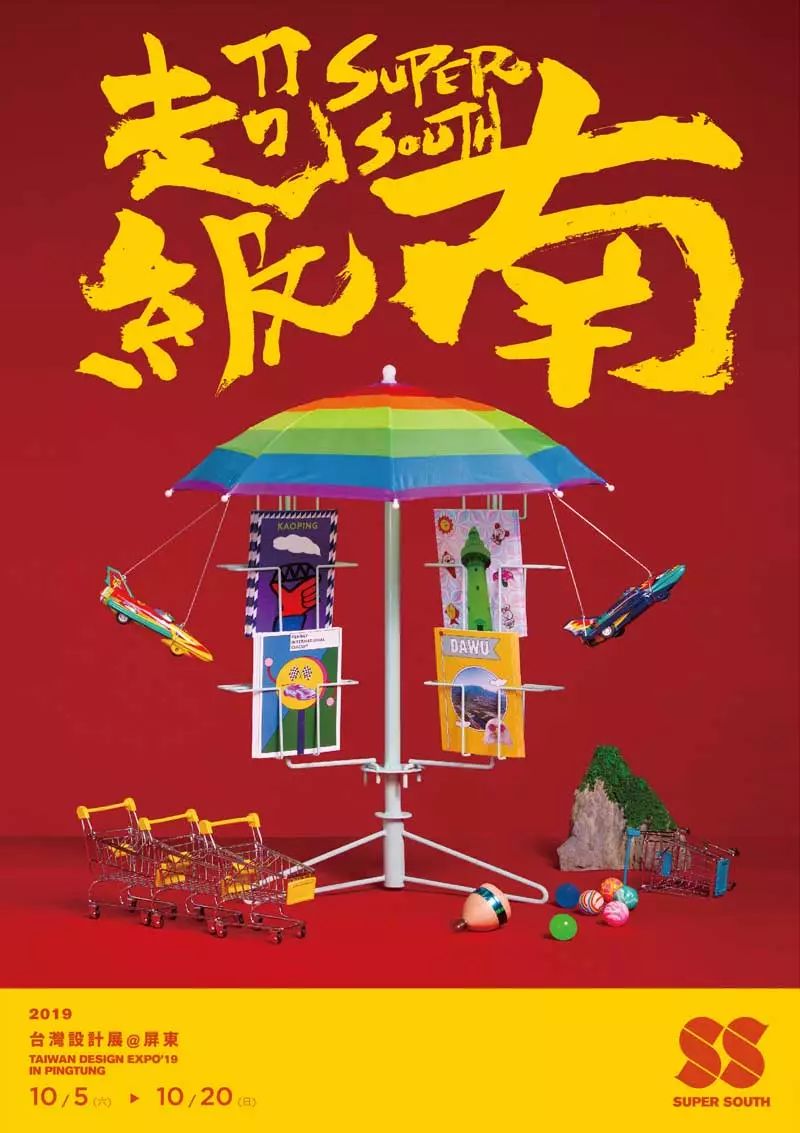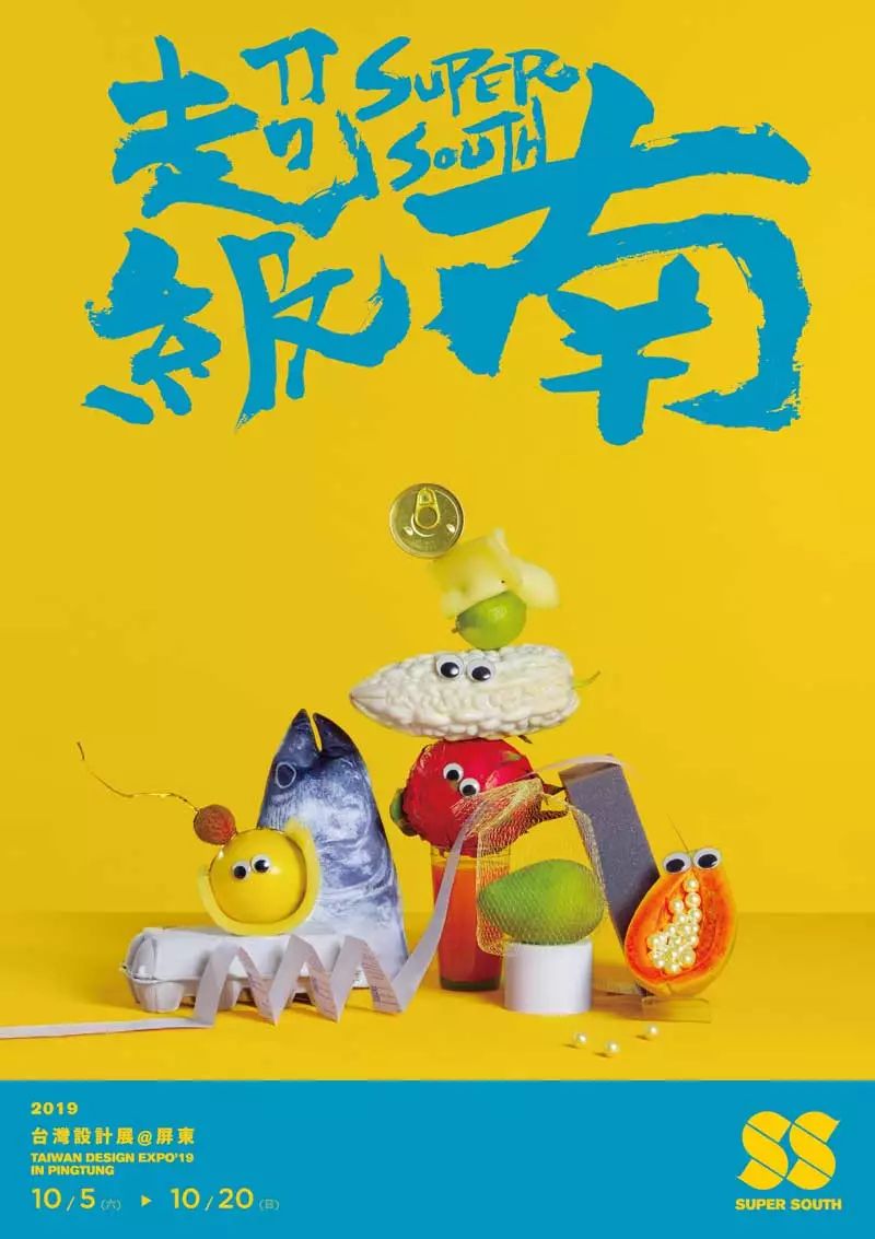 主題精神——“超級南(Super South)”,由知名設(shè)計師方序中操刀設(shè)計,主視覺海報SS的主視覺圖案,展現(xiàn)了生生不息的循環(huán),代表“臺灣設(shè)計展”這條超級輸送帶,將屏東推向全世界。
