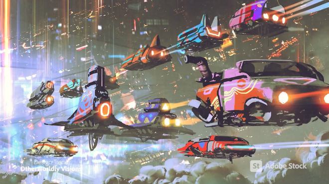 這一潮流從賽博朋克和科幻美學中繼承了高科技元素,并將它們帶到了一個全新的地方——擁有華麗、超現(xiàn)實的漸變、3D表面和紋理,以及屏幕內(nèi)外的時尚和布景設計。