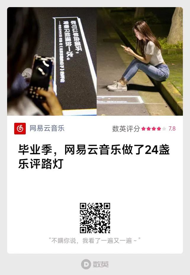 在2021年6月,網(wǎng)易云音樂把樂評放在了復旦大學的校園路燈下。它以路燈為紙,書寫“前路有光”的樂評寄語,讓云村居民的情緒與在校畢業(yè)生隔空和鳴,完成一場和用戶深度溝通的畢業(yè)儀式。