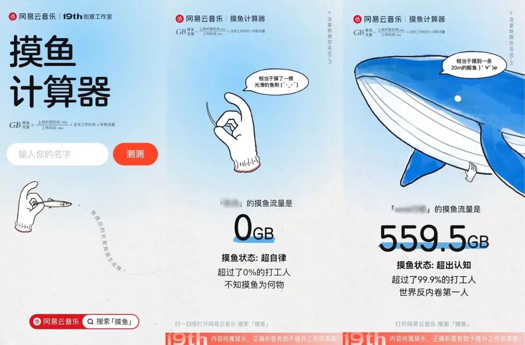 摸魚,是年輕人“反內卷”的默契。趁著“國美批評員工上班摸魚”上熱搜的功夫,網(wǎng)易云音樂連夜趕出“摸魚計算器”,將話題中心轉向自己,選擇站隊年輕人。