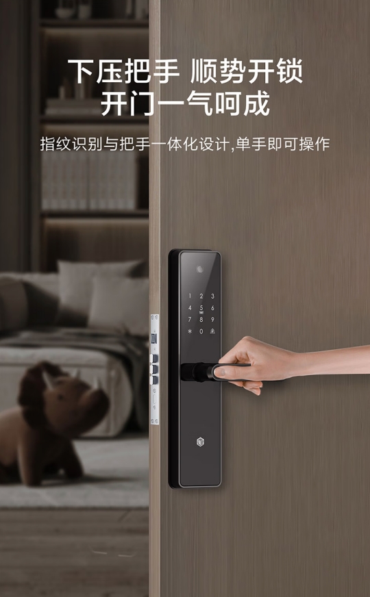 智能家居用品正在“潤物細(xì)無聲”地進(jìn)入人們的生活,尤其是智能門鎖,已成為智能家居生活中非常重要的一環(huán)。但傳統(tǒng)的智能門鎖使用路徑較長:“推開擋板——按壓手指——等待門鎖開啟聲音——扳動門把手”這一連串的動作,體驗其實并不好。京東京造設(shè)計團(tuán)隊洞察到這個用戶痛點(diǎn),將智能門鎖實現(xiàn)了指紋識別與把手的一體化設(shè)計,只需握住把手即可完成指紋識別時,順勢下壓把手即可開鎖,一個動作簡單且優(yōu)雅。此外,京東京造這款智能門鎖還實現(xiàn)了功能集成,將門鎖與可視貓眼結(jié)合,可自動抓拍門外異動,還能遠(yuǎn)程視頻,隨時隨地掌握門外的各種狀況,提供多重安全保障。