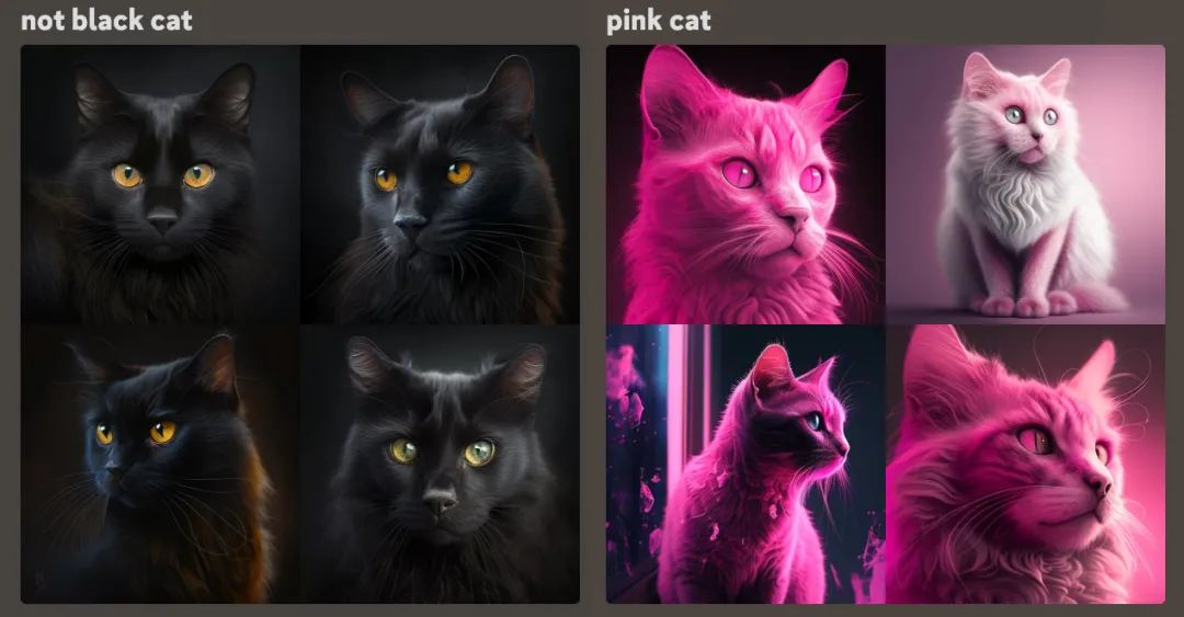 例如想生成貓的圖片,避免用「not black cat」,改用「pink cat」。