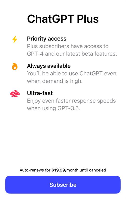 現(xiàn)在,不僅可以在手機上用 GPT-4,還可以直接在 App Store 訂閱,看起來會比網(wǎng)頁端方便很多。