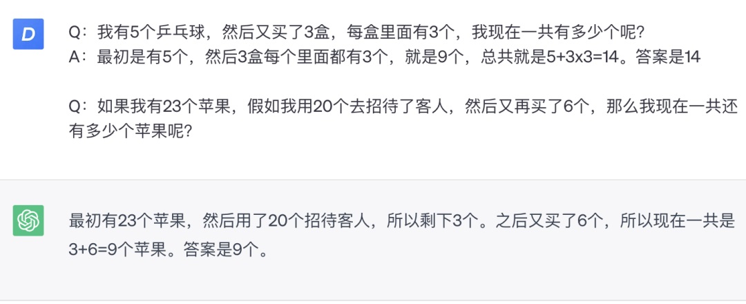 如上面的例子,AI 被我個出的示例來解釋其解決這個數(shù)學問題的推理過程,這樣做可以得到更準確的結果。