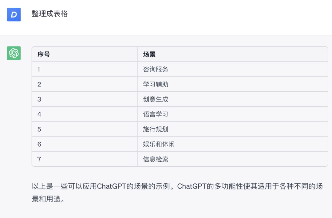 5)整理表格。有時候,你還希望它把回答整理成表格,那么可以說