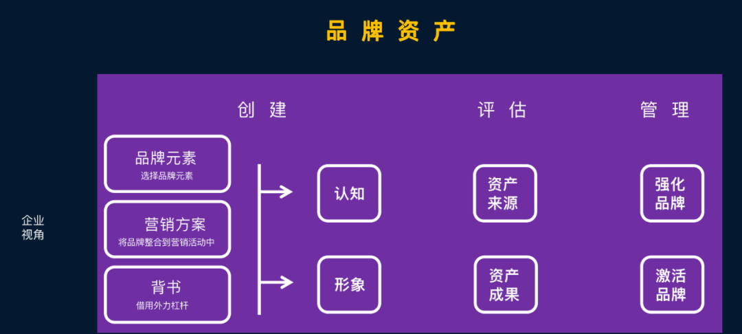 如果你的公司就一個品牌,那你只需要打造品牌資產(chǎn)就可以了。品牌資產(chǎn)包含:創(chuàng)建、評估、管理。