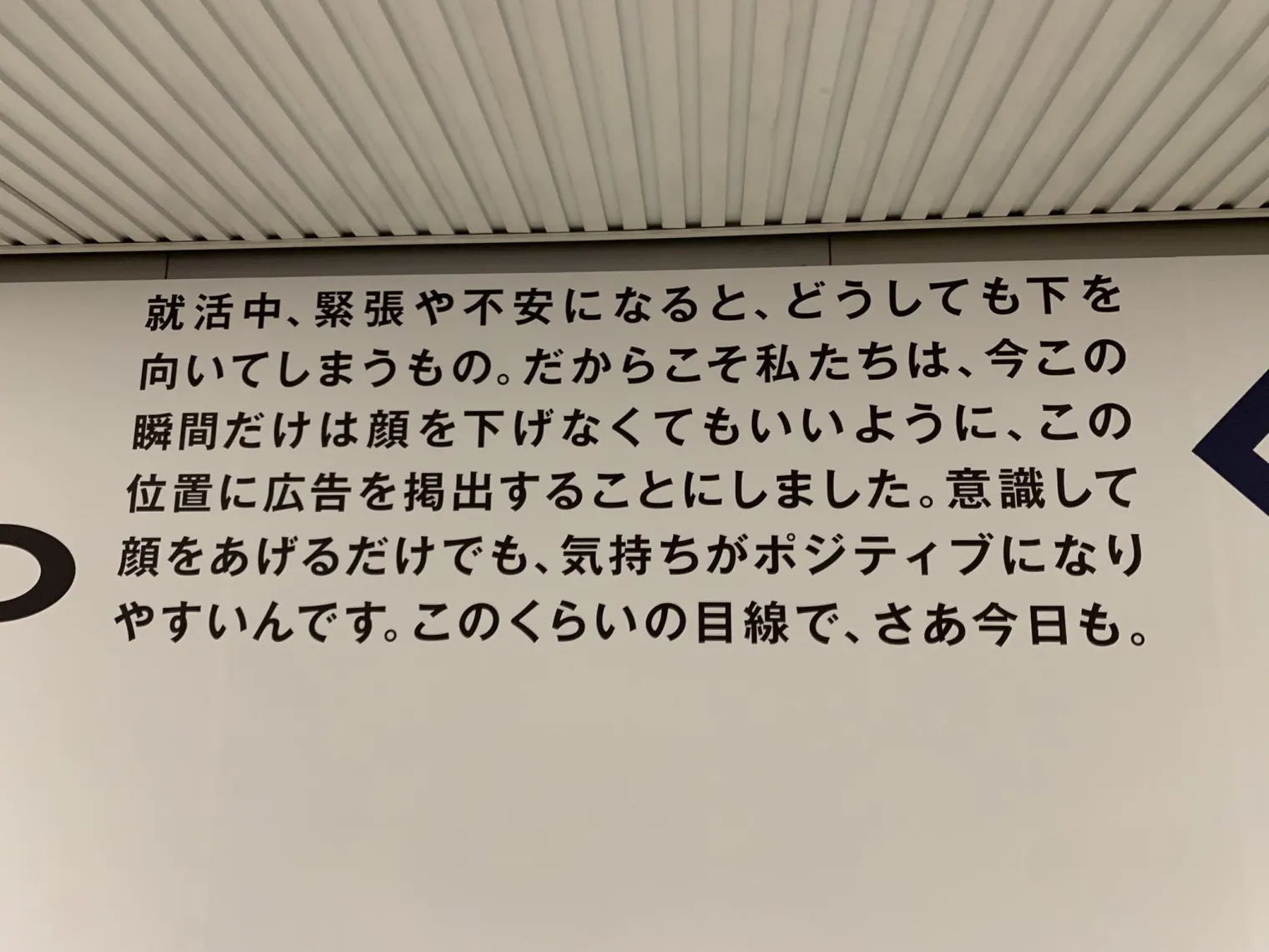 “找工作的時候,如果感到緊張或不安,人們很容易會低下頭。這就是我們?yōu)槭裁匆谶@里做這個廣告,這樣你就會在此刻抬起頭。只要有意識地抬起頭,心情就會變得積極。這么看來,今天也如此。”