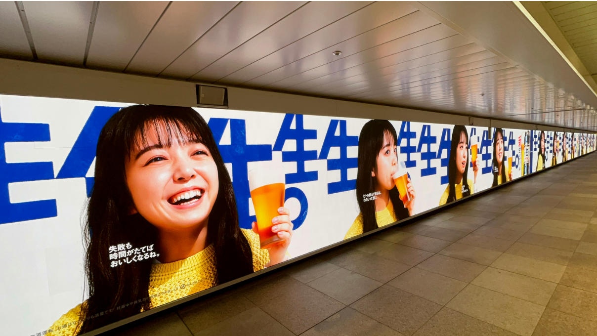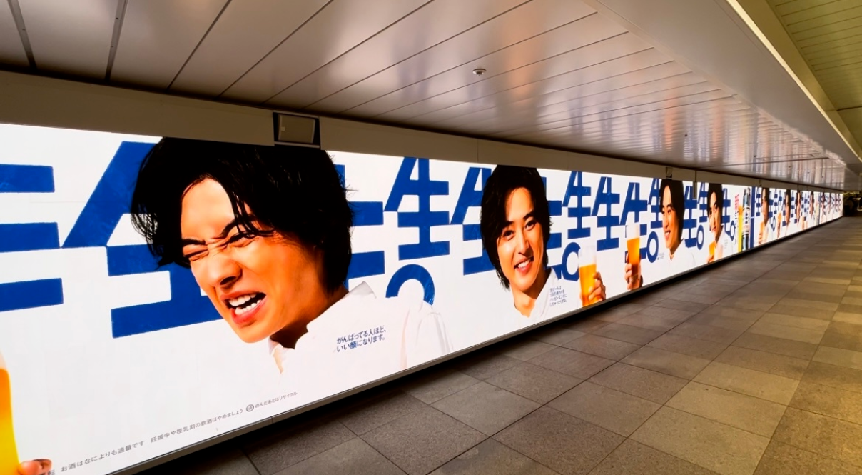 大道至簡得要功夫深,還是簡單粗暴更易學(xué)。三得利生啤的一組地鐵站廣告就是后者。