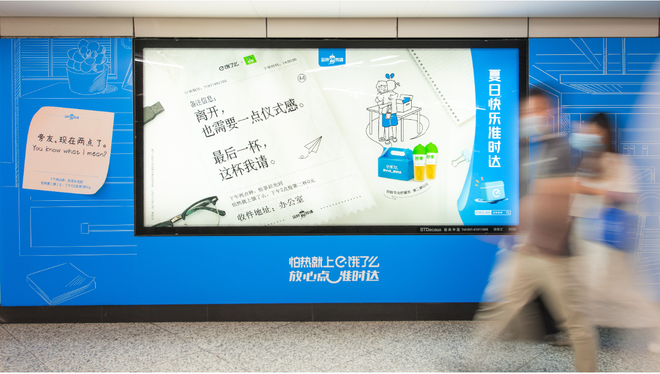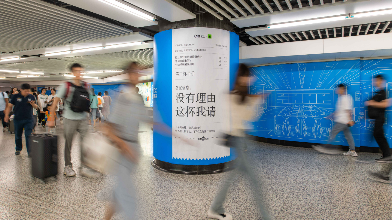繼去年在上海發(fā)起“感謝有你 這杯我請”后,餓了么今年再次豪氣請上海友友喝下午茶,還在打工人濃度超高的徐家匯地鐵站,大肆宣傳自己請客這事兒。好一波精準(zhǔn)投放。