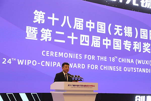 9月9日,第十八屆中國(無錫)國際設(shè)計(jì)博覽會開幕,第二十四屆中國外觀設(shè)計(jì)金獎(jiǎng)在開幕式上頒發(fā)。國家知識產(chǎn)權(quán)局局長申長雨、江蘇省副省長徐纓、無錫市市委書記杜小剛出席開幕式并致辭。世界知識產(chǎn)權(quán)組織(WIPO)總干事鄧鴻森通過視頻向大會致辭。國家知識產(chǎn)權(quán)局副局長盧鵬起宣讀第二十四屆中國專利獎(jiǎng)(外觀設(shè)計(jì))授獎(jiǎng)決定。