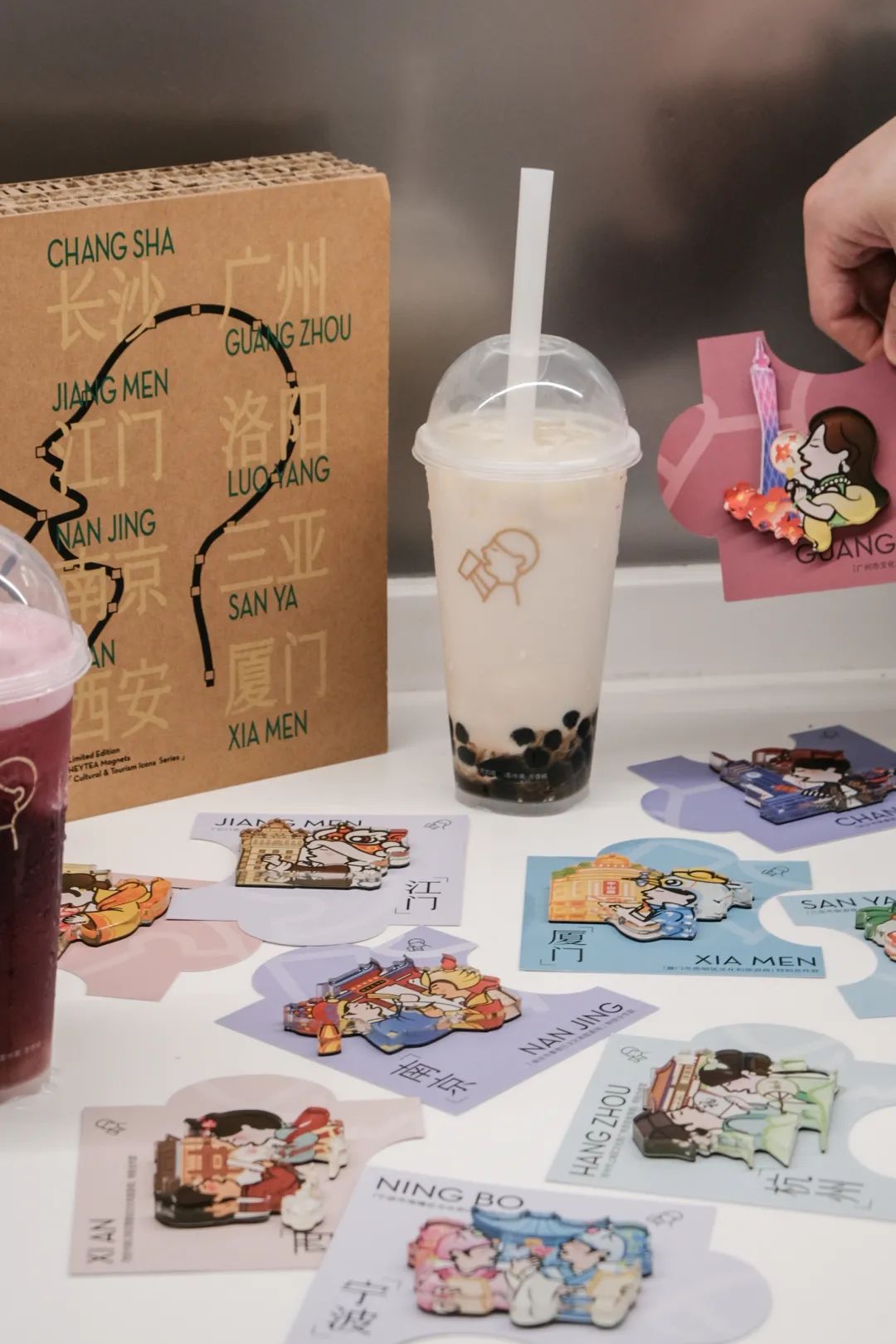 2023 年的五一假期,喜茶聯(lián)合了十一地的文旅部門推出了「城市文旅」限定冰箱貼,讓用戶感受「假期之喜」。