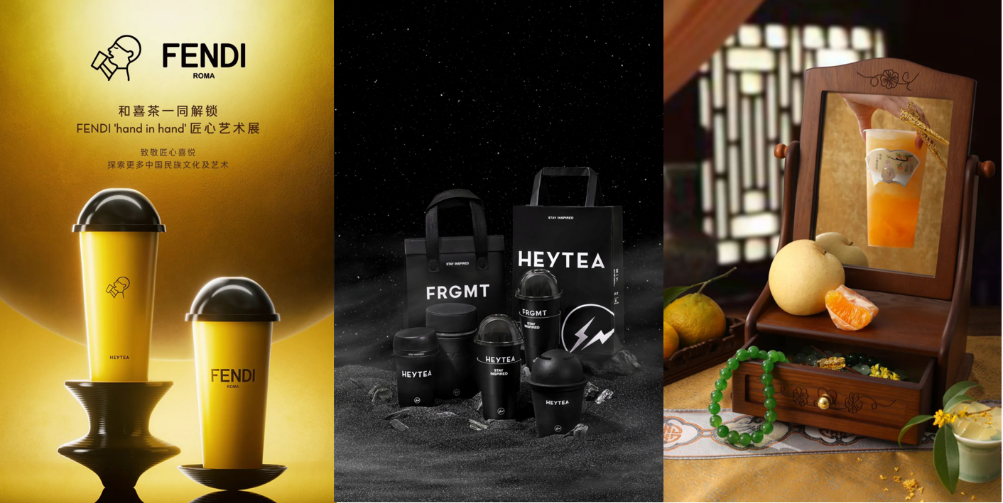 更常被討論到的還有喜茶在品牌內(nèi)容上的創(chuàng)造力,從藤原浩、FENDI 到《甄嬛傳》和《喜劇之王》等,這些被稱為「夢(mèng)幻聯(lián)動(dòng)」的合作,在消費(fèi)群體中引發(fā)了廣泛的反響和討論,帶來了用戶品牌感受上的「喜」。