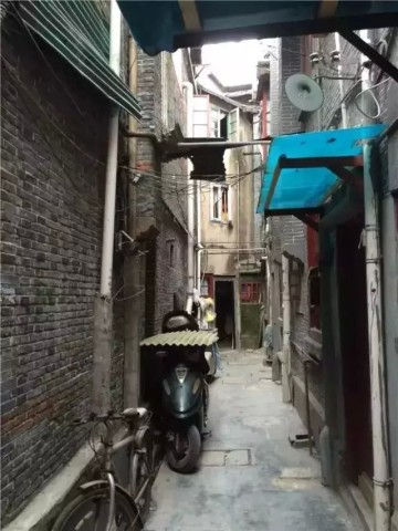 在這片四川北路的老石庫(kù)門房子中,住著一戶姓周的人家,雖有三層小樓,但是每層面積僅有12㎡。更令人無法想象的是,他們的家是用一個(gè)過道改建而成,存在于兩座房子的夾縫之中,他們依靠在兩排石庫(kù)門房子的夾角處,整整三層樓,只有正門的一面墻是周家祖上自己搭的,其它三面,實(shí)際上都是別人家房子的外墻。