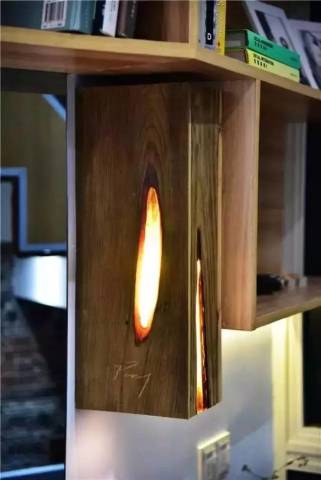 王平仲親手制作了周淵家特有的三盞燈,每層各有一個(gè)。他把樹脂調(diào)成琥珀顏色倒入木頭中間,干了之后便組成了這個(gè)家庭最重要的軟裝之一。王平仲為這個(gè)系列的燈取名“夾縫中的燈”,和整體空間相呼應(yīng),同時(shí)也是專門為周淵家特別定制的具有紀(jì)念意義的東西。