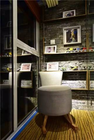 原有只有1.2公分的地板通過設(shè)計(jì)師的設(shè)計(jì)搖身變?yōu)闀堋艟摺в兄苁螸OGO的門牌。值得一提的是,小孩子喜歡畫畫,設(shè)計(jì)師將他對(duì)新家的想象畫用老地板的材料,以木刻的形式展示出來。