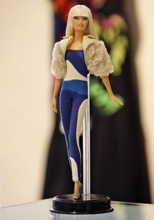 2004年12月13日,在保加利亞首都索非亞市中心的高級時裝Versus專賣店內(nèi),展出一個穿著意大利時裝設(shè)計師Donatella Versace設(shè)計、限量發(fā)行的新款服裝的芭比娃娃。這款芭比娃娃價值280列弗(合189美元),相當于保加利亞人平均一個月的工資。