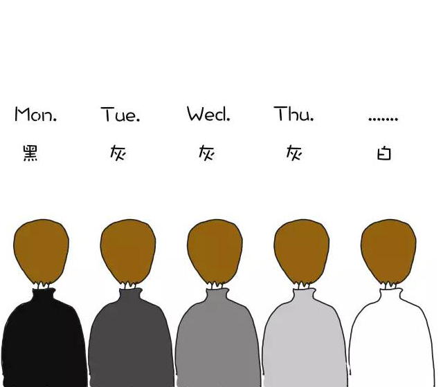 對色彩的飽和度極其敏感,大紅大綠、大藍大紫的花哨顏色,直接閉眼。打開衣櫥,清一色的黑、白、灰,請不要問為什么,就是這么高冷。如果你一定要問為什么,那我只能說作為一個對搭配有要求的設(shè)計師,黑白灰最穩(wěn)妥,也最能讓自己時刻hold住逼格的選擇。